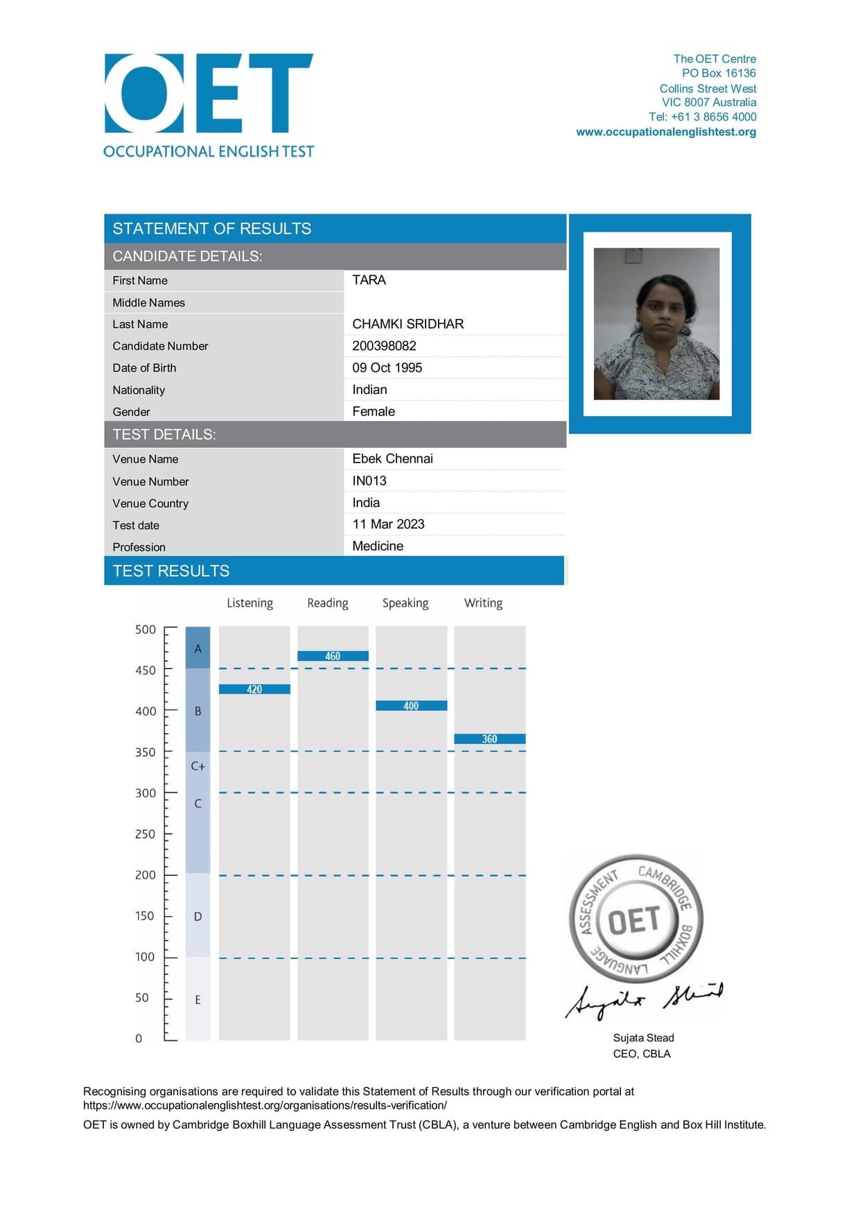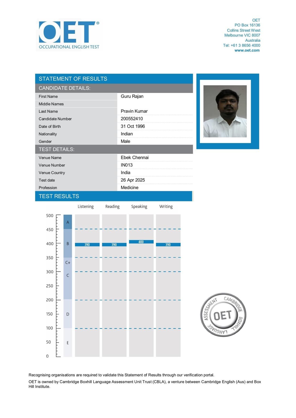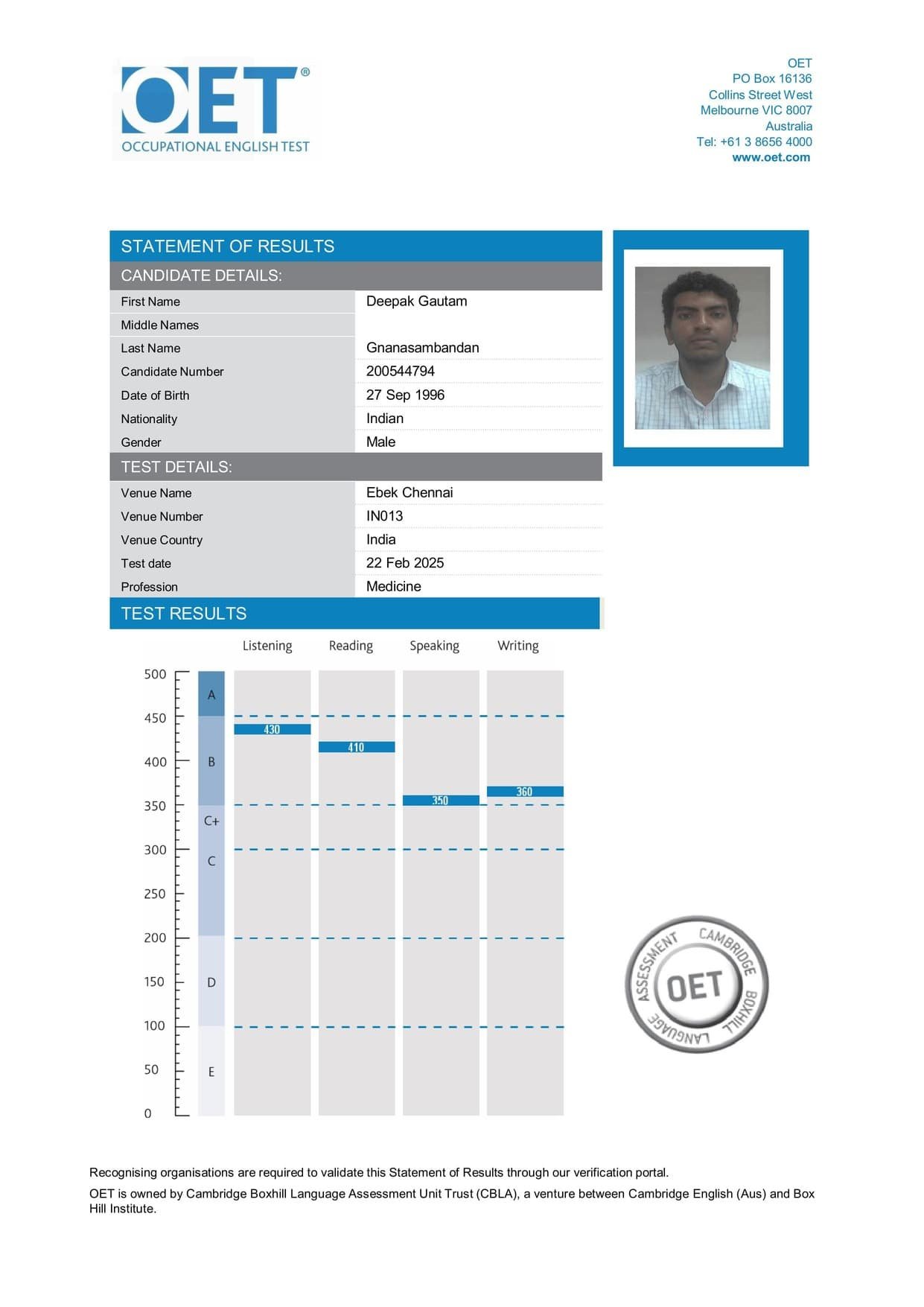 OET Mark Sheet