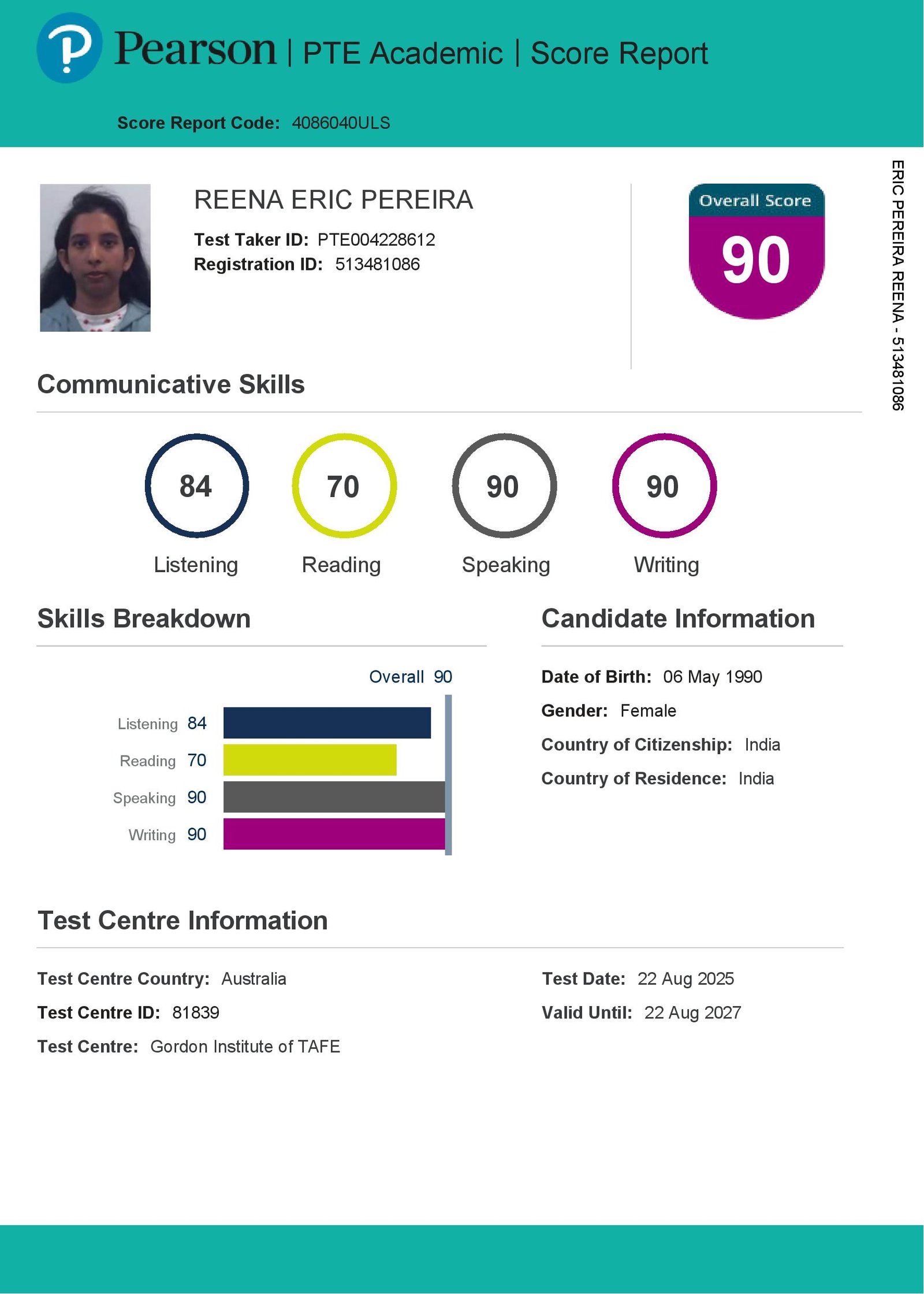 Thank you, Ms. Aishwarya, for all the guidance and support you provided during my PTE classes. Thanks to you, I was able to achieve an excellent score.